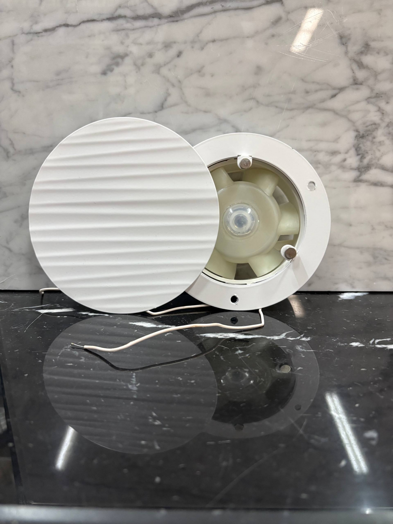Конструкция продумана до мелочей. Воздух поступает в вент шахту по периметру решетки при том само вентиляционное отверстие не видно совсем. Оно закрывается верхней панелью, при этом не перекрывая доступ воздуха.